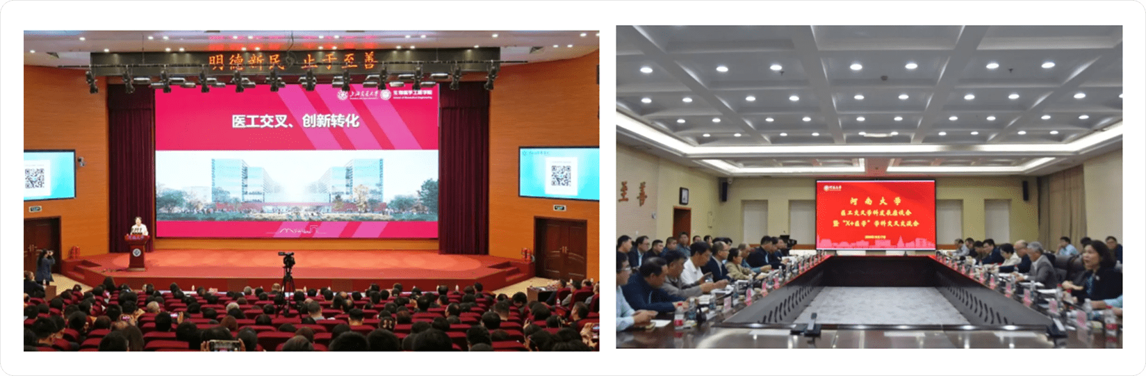河南大学副校长薛波在主持会议时表示,徐学敏教授一行的交流访问为河南大学医工交叉学科发展提供了宝贵的经验和启示,更为两校之间的合作注入新的活力和动力。要深化认识“新医科”建设背景下医工交叉的重要意义,牢固树立学科交叉融合发展理念;要统筹布局,协调发展,不断完善学科交叉融合;要坚持“起步于医” “落脚到医”,从临床诊治或者预防疾病实践中提出需要解决的问题,应用研究成果必须解决防病治病的实际问题,深度挖掘医工交叉科技创新点,双向融合,打通成果转化“最后一公里”,为推动医学领域各项事业高质量发展,为国家“双一流”、河南“双航母”战略提供强有力医学科技支撑。